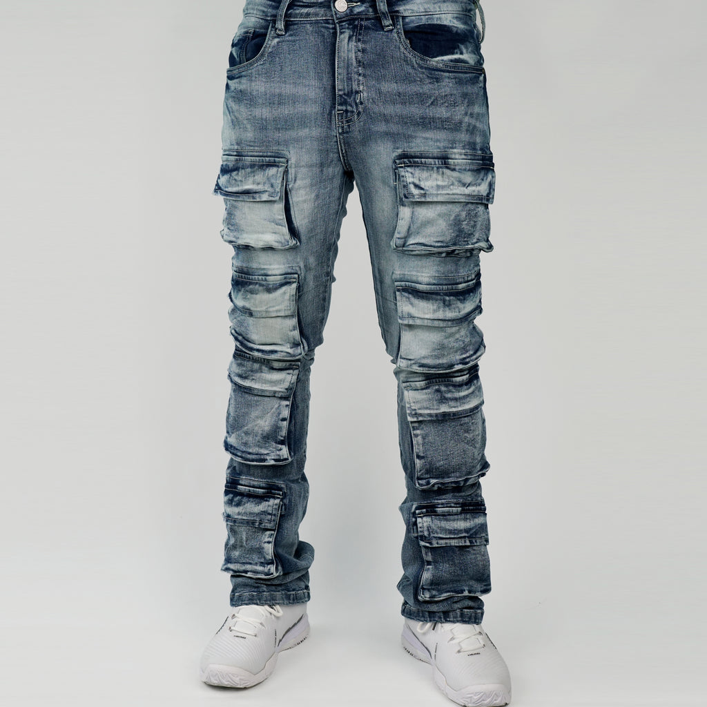 These Men's Crinkled Cargo Straight Fit Jeans offer a stylish blend of practicality and modern design. Featuring a crinkled texture for a worn-in, textured look, they come with functional cargo pockets for extra storage. The straight fit provides a comfortable, streamlined silhouette, making these jeans a versatile addition to any casual wardrobe. Ideal for everyday wear, they deliver both style and utility with a distinctive edge.