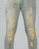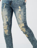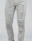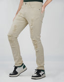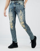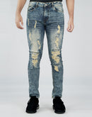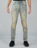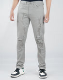 These Men's Rib & Repaired Denim Fabric Slim Straight Jeans combine a sleek, slim straight fit with rugged, distressed details for a modern, edgy look. Crafted from durable denim, they feature ribbed accents and carefully placed repairs for a worn-in, vintage-inspired vibe. The slim straight cut provides a flattering, streamlined silhouette, making these jeans a versatile and stylish addition to any casual wardrobe. Perfect for those who want comfort with a touch of bold, street-ready flair.