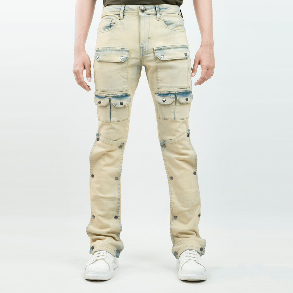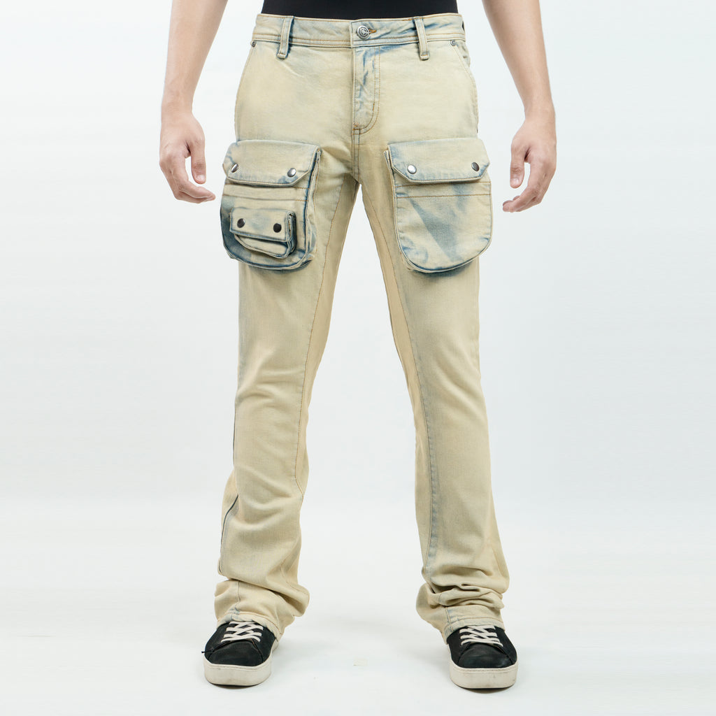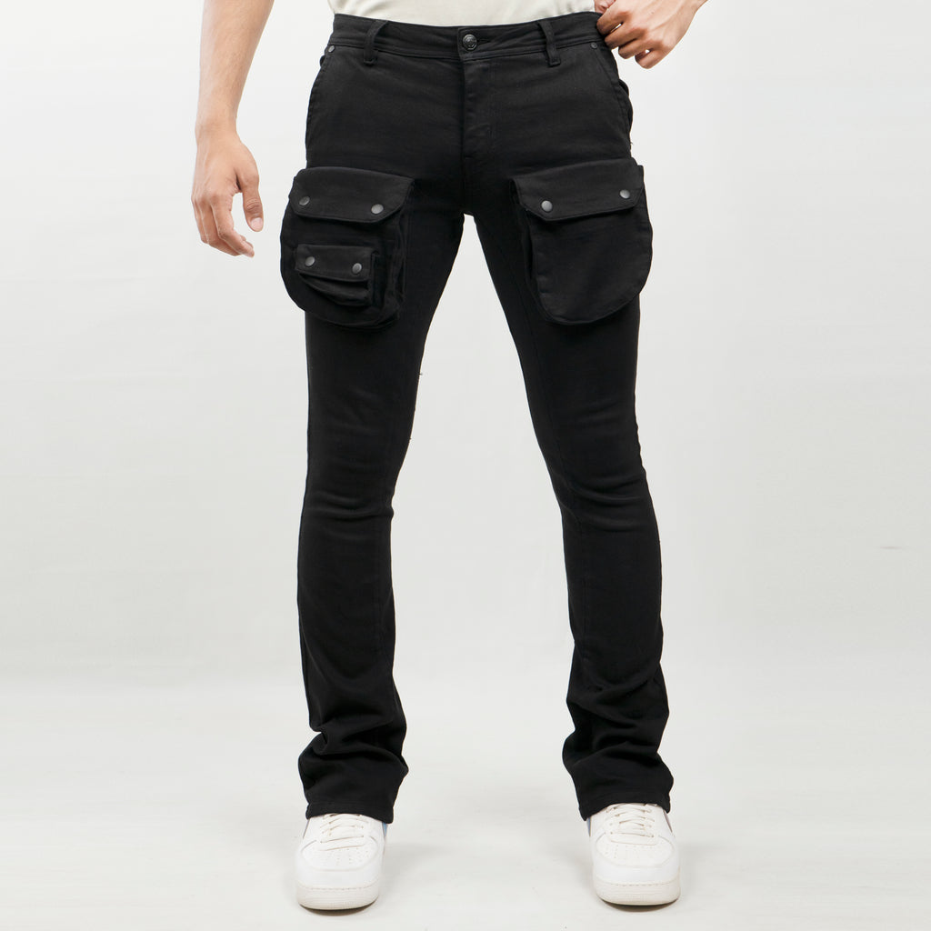 These Men's Cargo Stretch denim Pants combine utility and style with a rugged, modern twist. Made from durable Stretch denim fabric, they feature functional cargo pockets for added storage and a unique look. The Stacked fit ens...