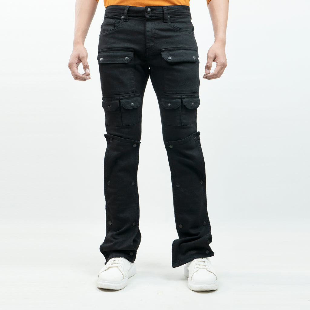 These Men's Cargo Denim Pants combine utility and style with a rugged, modern twist. Made from durable Stretch denim fabric, they feature functional cargo pockets for added storage and a unique look of extra bottom panels with ...
