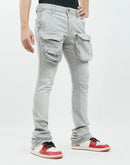 These Men's Cargo Stretch denim Pants combine utility and style with a rugged, modern twist. Made from durable Stretch denim fabric, they feature functional cargo pockets for added storage and a unique look. The Stacked fit ensures comfort while the stylish details give these pants a worn-in, edgy appeal. Perfect for those who want to blend practicality with a bold, street-ready style.