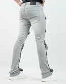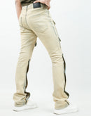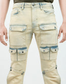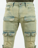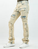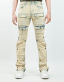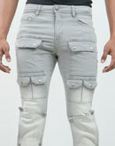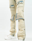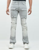 These Men's Cargo Denim Pants combine utility and style with a rugged, modern twist. Made from durable Stretch denim fabric, they feature functional cargo pockets for added storage and a unique look of extra bottom panels with snap button attachment. The Stacked fit ensures comfort while the stylish details give these pants a worn-in, edgy appeal. Perfect for those who want to blend practicality with a bold, street-ready style.